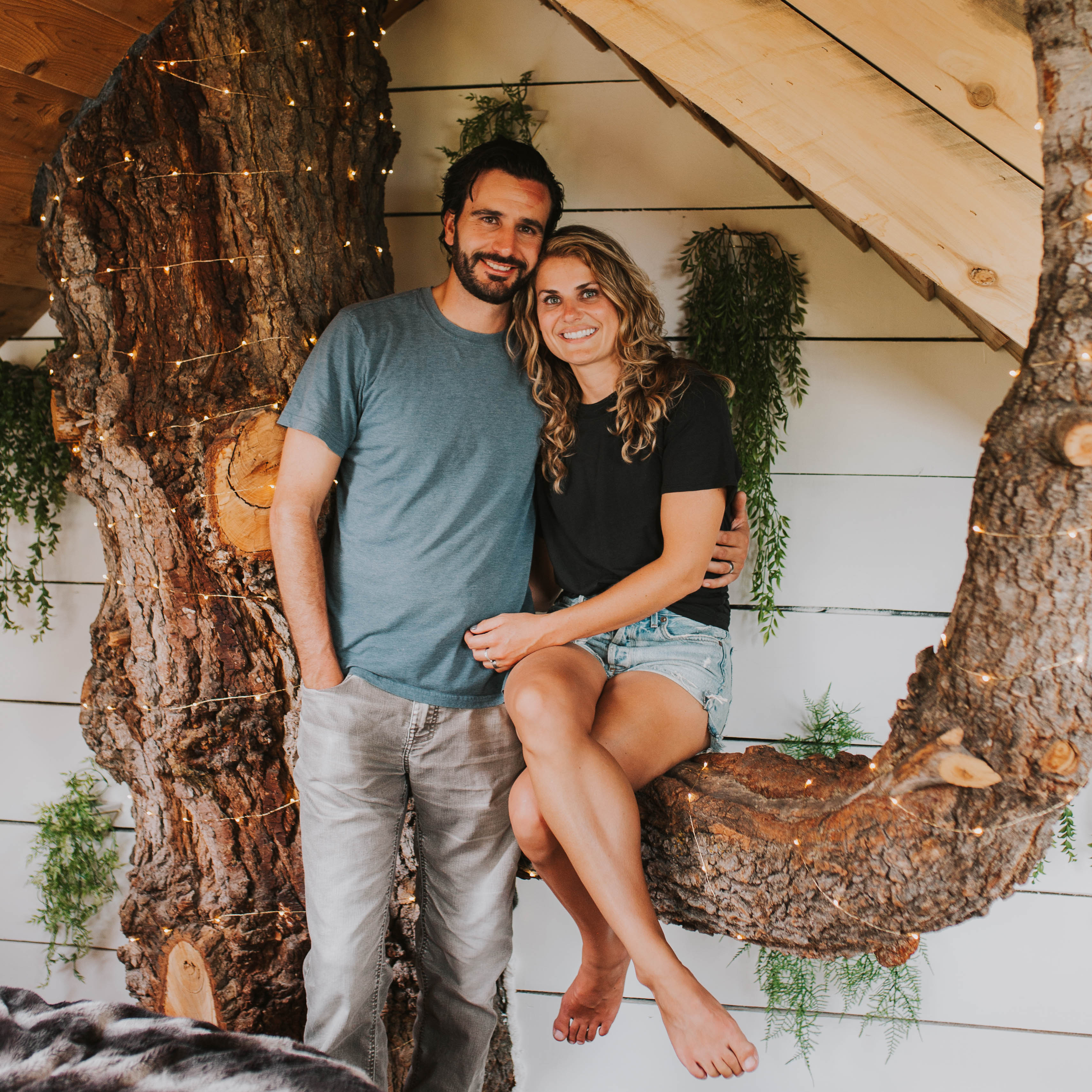 Top Picture: Gianni (Left) & Rocky (Right) in the lofted bedroom of The Treehouse Utah where the 200-year old fir grows through the space.